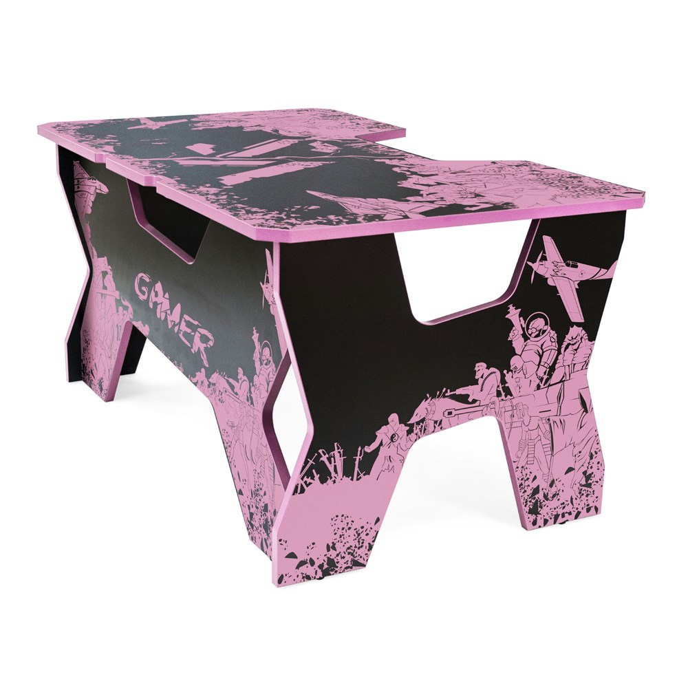 Generic Comfort Gamer2/VS/NP - компьютерный стол, выделяющийся своим необычным и смелым дизайном. Черная поверхность стола дополнена розовыми кромками и украшена ярким рисунком розового цвета, выполненным методом ультрафиолетовой печати. Такая технология позволяет получить яркие, насыщенные и долговечные изображения с высокой стойкостью к истиранию. Характерной особенностью подобного метода является то, что изображение выступает на 0,2 мм над поверхностью за счет того, что наносится слоями, поэтому рекомендуется использовать коврик для мышки при работе за данным столом.