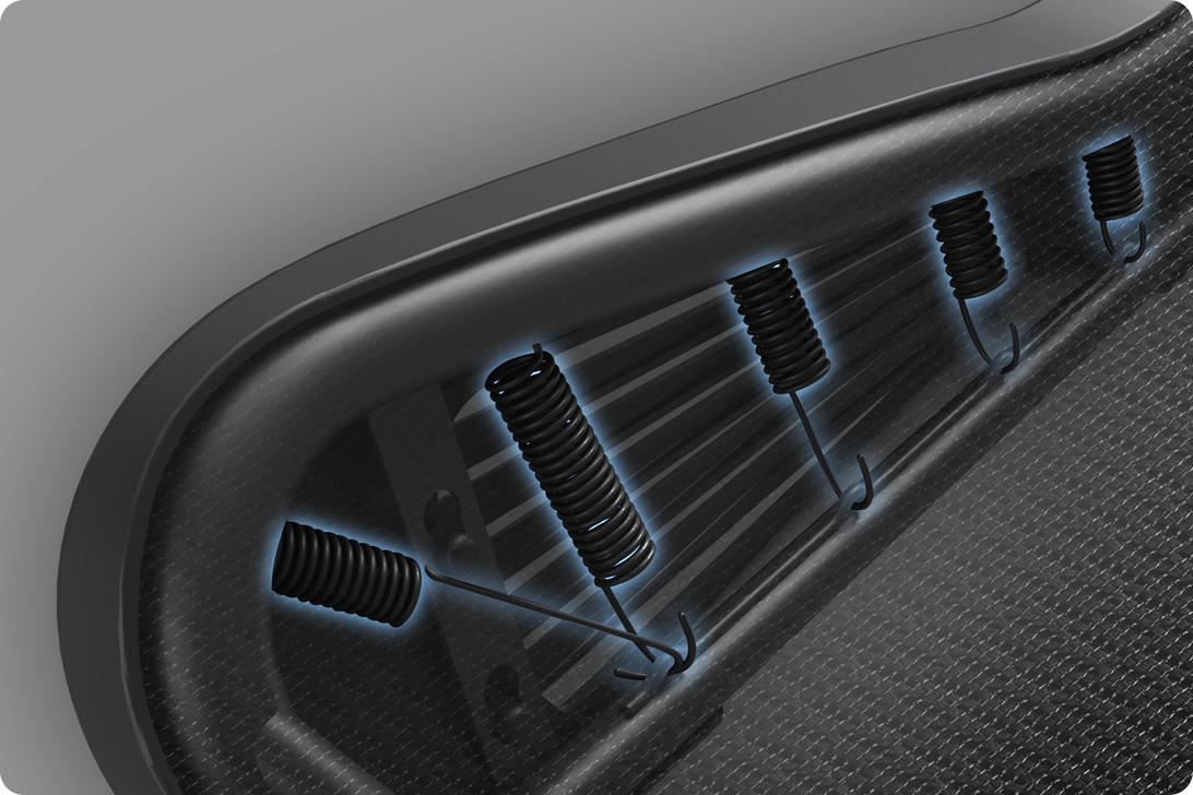 Экологически усиленная сетка в сочетании с эксклюзивными пружинами подвески, применяемыми на гоночных автомобилях, создает легкую, отзывчивую амортизацию, продлевая долговечность кресла.