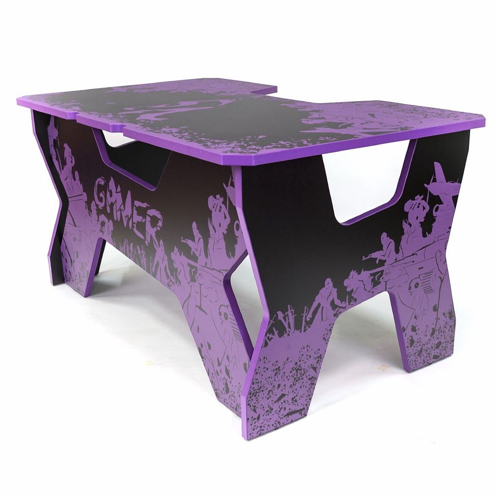Generic Comfort Gamer2/VS/NV – оригинальный компьютерный стол, отличающийся своим смелым дизайном. Черная поверхность стола обрамлена фиолетовыми кромками и украшена ярким изображением фиолетового цвета, нанесенным по технологии ультрафиолетовой печати. Современные УФ-чернила насыщенные, яркие и создают долговечный рисунок с высокой стойкостью к истиранию. Характерной чертой подобного метода является то, что изображение наносится слоями и выступает на 0,2 мм над поверхностью, поэтому с данным столом рекомендуется использовать коврик для мышки.
